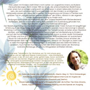 Die Art, wie wir miteinander leben, wie wir innerlich anwesend sind, führt immer wieder von Neuem zu verzerrten Bindungsstrukturen bei unseren Kindern, die im Erwachsenenalter ihre sozialen Beziehungen und ihr Seelenleben prägen werden. Hinzu kommt, dass ein vertieftes Wissen über kindliche Entwicklungsprozesse und Bedürfnisse nur wenig verbreitet ist und wir kaum Vorbilder dafür finden, wie wir Kindern achtsam, klar und respektvoll begegnen können.